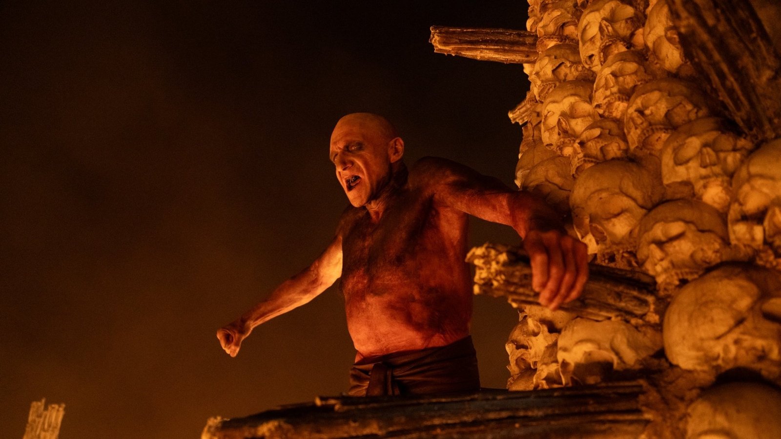 DaCosta reveals this devilish lip sync was in the Alex Garland screenplay, which as a whole made her eager to come on as director. However, reading this particular scene on the page, she thought, “Well, this could end my career. It’s like, how do you make this work?”Across 28 Years Later and The Bone Temple, Dr. Ian Kelson is a bit of an odd duck in the post-apocalypse. He lives in a bunker under a towering ossuary he’s made of the bones of the dead. Between that and staining his skin an orangey-red with iodine, he’s an intimidating figure at a distance — mistaken for Satan himself by Jimmy Ink (Erin Kellyman) and her sir, Lord Jimmy Crystal. But up close, he’s a soft-spoken, educated man, eager to offer comfort and compassion however his skills and dwindling supply of drugs will allow. However, under threat of torture and death, the good doctor must masquerade as Satan himself to con the Fingers, as Jimmy demands. Cue Iron Maiden. Using the hand-crank record player he’s had squirreled away in his bunker and a flurry of remarkable DIY theatrics, Kelson not only awes Jimmy and the Fingers — who admittedly have never seen a rock show of any sort — but also excites the theater audience. Both times I’ve seen Bone Temple (so far), once Kelson’s performance concluded, the audience broke into applause and cheers of elation. But staring at the script, DaCosta was aware of how big a swing such a scene is. “I think at this point in my career, I’ve learned to just, like, trust the process and the collaborators,” she said. “And that was, like, absolutely that. So Shelley Maxwell, my choreographer; Gareth [Pugh] and Carson [McColl], our costume and production designers; the special effects team; stunts; hair; makeup — like, everyone just came together. And once we [could] see what we want[ed] to do… It was just amazing. And then Ralph having to do that [performance] for hours and be basically naked.”She then deferred to O’Connell, asking, “There was one day where you guys just came at night to see the full thing, right?””Yeah,” O’Connell concurred, adding, “It was a bit of a crescendo moment. All departments, set design, costumes, a big, big ring of fire and things. They are amazing moments anyway, them crescendo times. But for me, it was very hallucinogenic.” DaCosta shared his affection for this time on set, declaring, “It was just so insane. It was so fun.” She cheered her production team for their detail-oriented work, saying that in the end, they had so much they could “only do the very best ideas.” The director added, “I had the best collaborators. Then Ralph killed it. And then the way that Jack and the other Jimmies responded to it was just so — because [their] response is really what the scenes about — like, what he’s doing is amazing, but it’s really about how these Jimmies are seeing this person.” For DaCosta, whatever doubts she had looking at the script for the first time were allayed once she saw the first rough cut of Fiennes’ dance footage. “On the [shoot] day, I was like, ‘That’s amazing,” she recalled, adding, “When [editor Jake Roberts] sent me that [scene], while we were still shooting, I was like, ‘All right, thank God. We’re good.”28 Years Later: The Bone Temple is now in theaters.